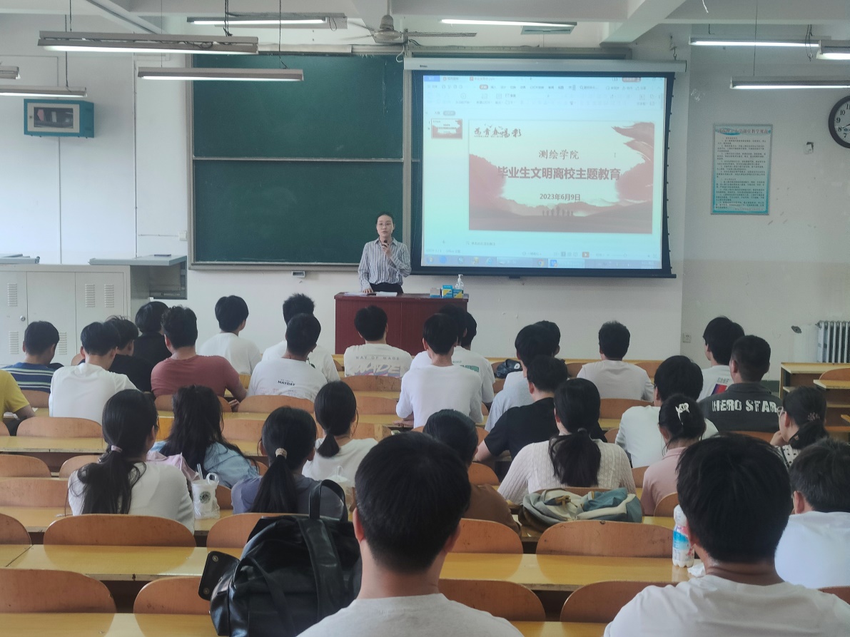 为切实引导广大毕业生坚定理想信念、厚植家国情怀、砥砺担当之志,营造和谐温暖、积极向上的毕业氛围,维护校园安全稳定,6月9日,测绘学院开展毕业生主题教育活动。会议由毕业班辅导员胡佰林、杨笑冰老师主持,毕业班学生骨干、党员代表参加会议。