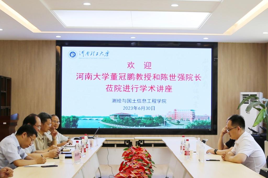 6月30日下午,应我校测绘学院邀请,河南大学教授、博士生导师董冠鹏和河南大学黄河文化研究院副院长陈世强在测绘学院二楼会议室分别作题为《城市大数据的时空分析与建模》以及《黄河文化与黄河学的实践探索》的学术讲座,讲座由测绘学院副院长程钢主持,学院相关专业师生到场聆听交流。