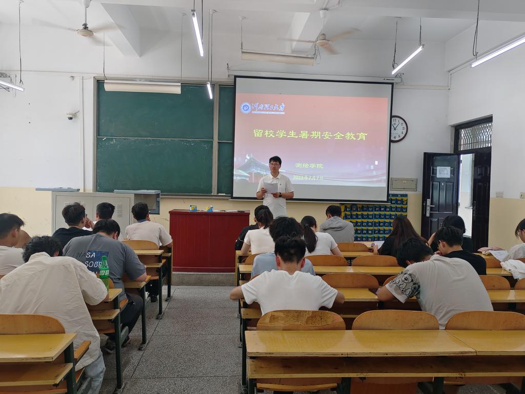 会上,郭学鹏传达了《河南理工大学2023年暑假学生安全教育管理通知》,强调学院要高度重视暑期学生安全教育工作,要重点开展学生人身财产安全、消防安全、交通安全、实习实践等安全教育,切实增强学生安全防范意识和自我保护能力。为做好暑期留校学生管理工作,学院组织发放《暑期安全提醒卡》并签订《留校安全承诺书》,确保安全教育提醒和防范内容人人知晓,人人遵照执行。会后,学院各辅导员针对暑期留校学生召开了安全教育会议,传达了学校、学院会议精神,为留校学生的安全做好保障。