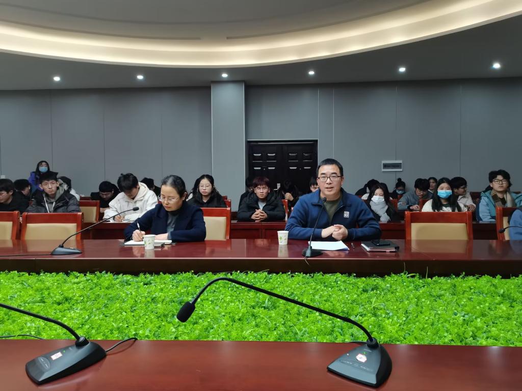 会议伊始,院长袁占良对学生们的生活表达了深深地关切之情,并对他们的工作表达了高度的肯定。随后院长袁占良结合自身经历,就五个方面与学生们进行交流:一是要加强身体锻炼,健康的身体是一切学习、活动的基础,鼓励同学们积极参与课外活动;二是要学会学习,将学习作为一种乐趣,学会自我激励和调节,做好短期与长期的规划;三是关注自身心理健康,放下手机,积极参与社交活动,调整好自身的心态,积极乐观的学习、生活;四是讲诚信、守道德,端正学术思想,通过自身努力取得优秀成果;五是要有情怀懂感恩,用自身所学知识回馈家庭与社会。之后,与会师生进行座谈交流。最后,会议在热烈融洽的氛围中结束。同学们纷纷表示,今后会坚定自身的发展方向,不忘初心,在努力奋斗中锻炼自我,超越自我,早日成长为一名对社会有用的栋梁之材。