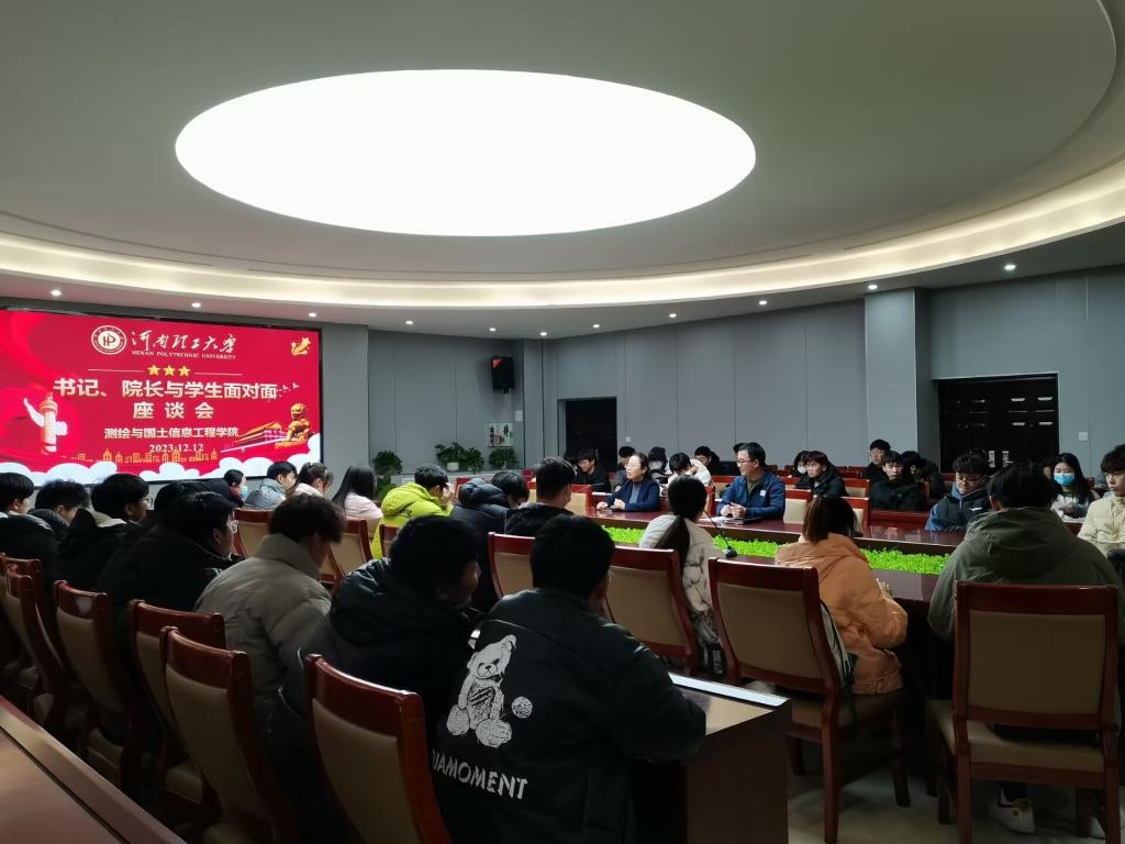 2023年12月12日,在测绘学院101会议室召开书记、院长与学生面对面座谈会。此次会议有测绘学院党委书记张红霞、院长袁占良以及大一至大四各年级班长和党支部学生副书记代表等九十余人参加,会议由党委书记张红霞主持。