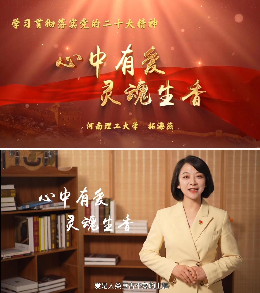 近日,由河南理工大学学生处和测绘与国土信息工程学院共同指导,以宣传党的二十大精神为主题的视频宣讲作品《心中有爱 灵魂生香》入选高校辅导员队伍能力提升大数据赋能平台,该作品经学校、河南省教工委、中国高等教育学会辅导员工作研究分会逐级审核推荐并成功入选。
