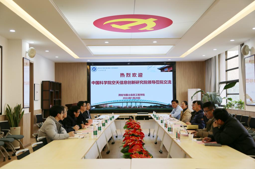 1月20日上午,国家国防科工局重大专项工程中心主任助理邢进、中国科学院空天信息创新研究院研究员占玉林、河南省高分中心副主任范文欢等一行7人莅院调研交流。座谈会在测绘学院221会议室举行,测绘学院院长袁占良、测绘与信息工程学部办公室主任兼副院长李克昭,以及相关系室负责人参加会议。座谈会由袁占良主持。
