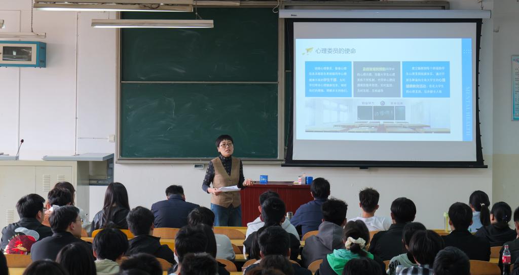 首先,牛小敬老师围绕心理委员的角色定位与职责展开讲解,重点对心理委员在日常工作中如何帮助学生解决心理问题进行针对性指导。培训中,牛小敬老师对心理健康的概念进行了系统化的讲析,向同学们传授了心理健康评估的方法与标准。同时,她强调帮助广大学生构筑结实的心理防线,保持良好的心理状态,能够有效提高学习和工作的效率,助力学生们更好地实现人生价值。最后,牛小敬老师与同学们进行了深入交流和讨论,分享关于危机事件应对处理的典型案例。培训后,郭学鹏对各班级心理委员、宿舍信息员在学生心理工作中的辛苦付出表示衷心的感谢,同时对大家提出两点期望,一是希望同学们在今后的学习和生活中做到“三心”即“爱心、耐心、细心”,时刻关注、发现特殊心理问题学生并及时反映给老师。二是希望大家当好辅导员的助手,将心理工作前置化,做好心理健康宣传、引导工作,为守护好同学们的“心灵家园”保驾护航。