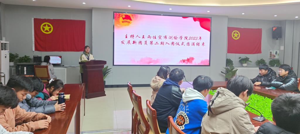 为进一步明确新团员责任和使命,增强他们的社会责任感和使命感,12月15日晚,测绘学院团委于院楼101会议室举办新团员入团仪式,仪式由秘书处王雨佳主持,我院2023年第二期发展新团员和团委综合办公室全体成员参加。