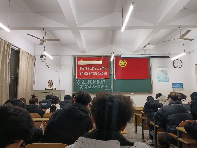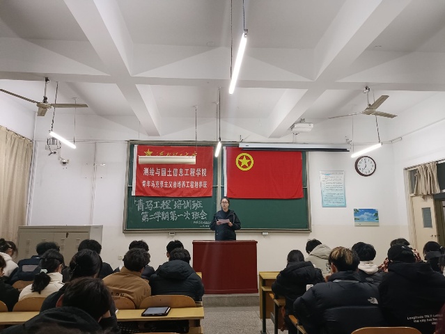 为切实帮助我院青马班全体学员在新学期迅速调整状态,明确本学期的目标和任务,激发学习热情,3月1日晚,测绘学院第十三期“青马工程”培训班于院楼302教室召开第二学期第一次班会。班会由秘书处付涛主持。