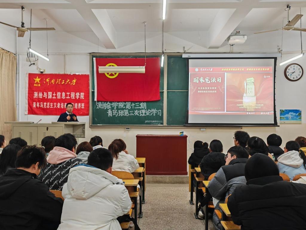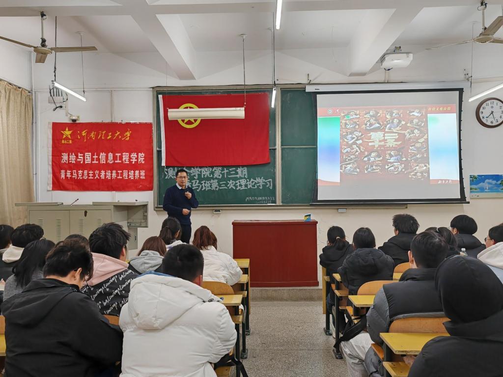 为深入学习法律知识,提高学员法律意识,3月8日下午,我院团委综合办公室于测绘院楼302召开第十三期“青马工程”培训班第三次理论学习,邀请学校党的二十大精神专题宣讲团成员、文法学院法学系副主任何平作普法宣讲报告。会议由秘书处范欣雨主持,我院“青马工程”培训班全体成员聆听了报告。