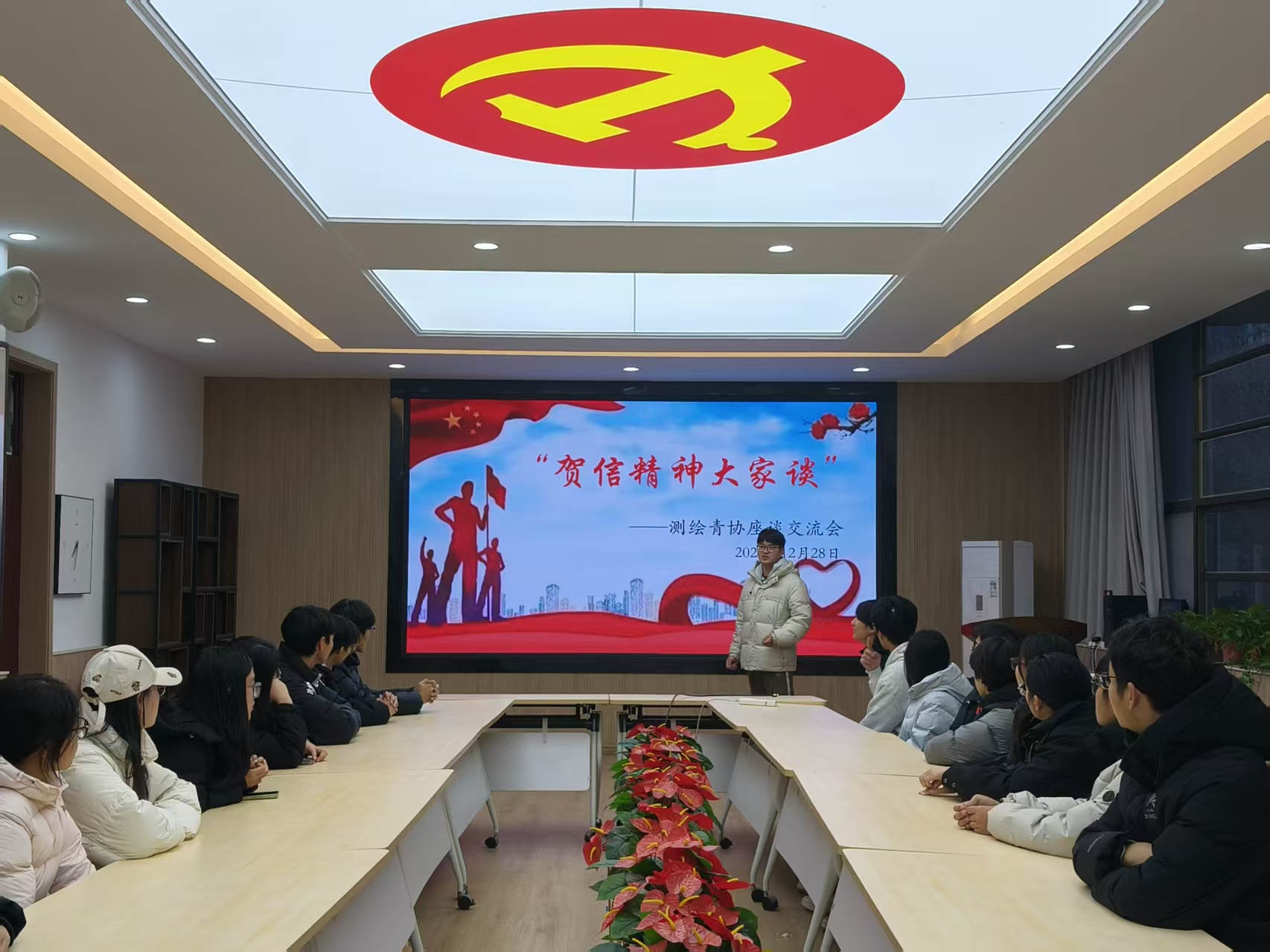 为深入学习宣传贯彻习近平总书记致中国志愿服务联合会第三届会员代表大会重要贺信精神,落实共青团河南省委相关工作部署,2025年12月28日,第35届测绘学院青年志愿者协会召开“‘贺信精神大家谈’测绘青协座谈交流会”。测绘青协主席团,志愿者代表等20余人齐聚一堂,共话志愿服务发展新路径。