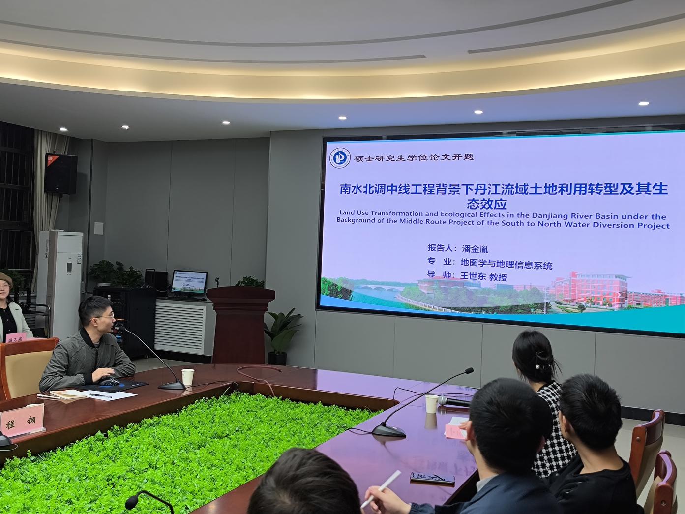本期活动由22级潘金胤硕士生做报告,报告题目为《南水北调中线工程背景下丹江流域土地利用转型及其生态效应》。报告伊始,潘金胤先向大家介绍了一下南水北调工程以及丹江流域的概况。接着,他从研究目的与意义、国内外研究进展、主要内容、技术路线和可行性分析、研究特色和创新性等方面向大家汇报了近期的工作进展。随后,与会教授依次进行了点评,分别从数据更新、相关研究借鉴、研究方法创新以及生态评价指标确定等方面提出了若干改进建议。最后,与会其他同学也纷纷提出了自己的疑惑,得到了老师们的亲切解答。