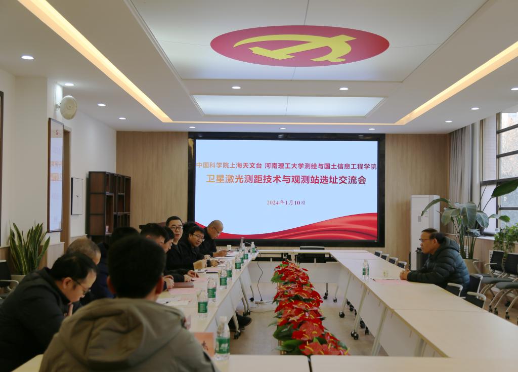 1月10日上午,上海天文台张忠萍教授莅院就卫星激光测距技术与观测站选址进行调研交流。交流会在测绘楼221会议室举行,河南理工大学学术副校长金双根、测绘学院院长袁占良、基建处副处长张英、测绘学院副院长李克昭、国资处设备管理科科长侯占伟,物电学院黄高见老师以及测绘学院遥感系主任都伟冰等参会。会议由袁占良主持。
