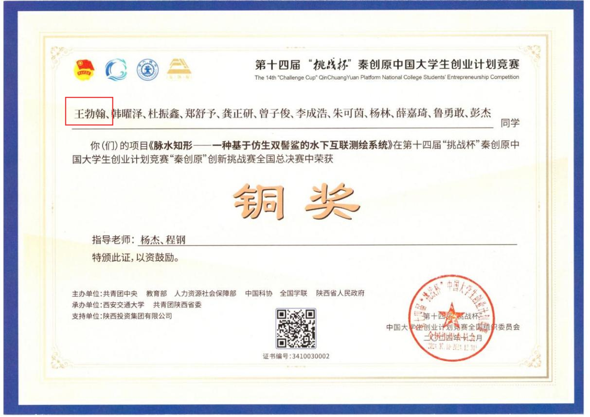 入学三年,王勃翰以“勤学”立基:连续两年稳居专业综合排名第1,获国家励志奖学金,成功推免至中国科学技术大学攻读研究生;以“创新”破局:主持国家级大创项目并优秀结项,申请发明专利1项、知识产权4项,在核心期刊发表论文1篇,累计斩获国家级荣誉14项、省级10项,牵头创立的创新社团获评“全国十佳卓越创新社”,带领团队在“挑战杯”等赛事中摘得国家级银奖;以“服务”铸魂:兼任南阳市石桥镇团委副书记,假期投身“万人助万企”基层服务近5个月,任院学生会主席期间统筹活动40余项、覆盖5000余人次,以党员的赤诚传递青春温度。